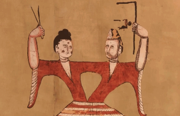 △ 《伏羲女娲图》,吐鲁番博物馆藏。