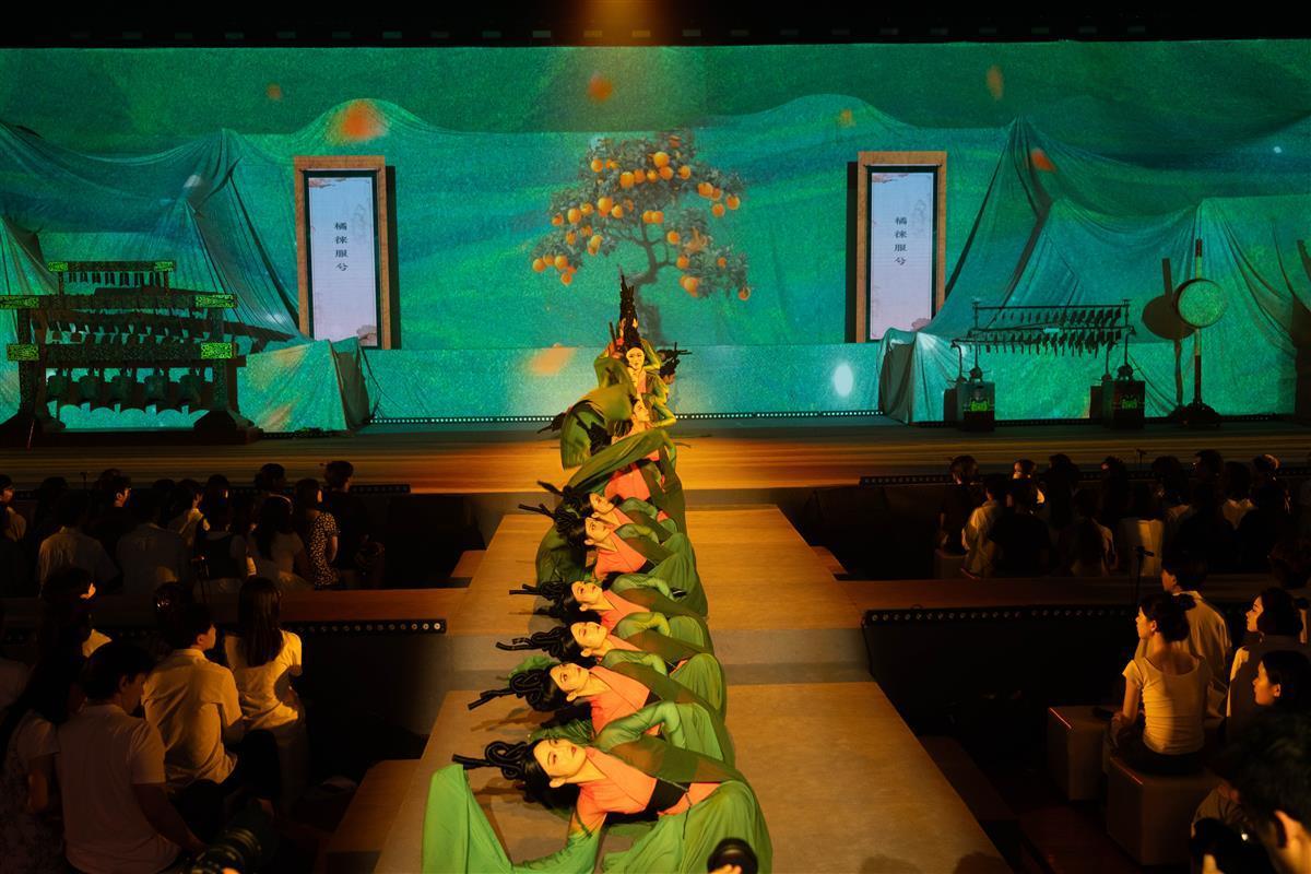 “说到端午,说到屈原,说到托物言志,就不能不想起《橘颂》。《九章·橘颂》歌颂橘树,实际是屈原对自己理想和人格的表白,表达了诗人守志不移、严于律己的高尚情操,表现了深厚的爱国情感和强烈的家国情怀。舞蹈作品《橘颂》,咏叹其忠诚不渝、扎根故土的高洁品格,用舞蹈语汇诠释楚辞的浪漫、楚风的瑰丽,向大学生们传承这种民族精神。在武软的校园里,有许多铭刻着古诗词的文化石,其中有一块,也上书‘橘颂’,寄予了学校对于学生们作为职业技术人才有知识、有技能、有文化、有情怀、有希望的殷切期盼。”武软团委书记陈菡说。