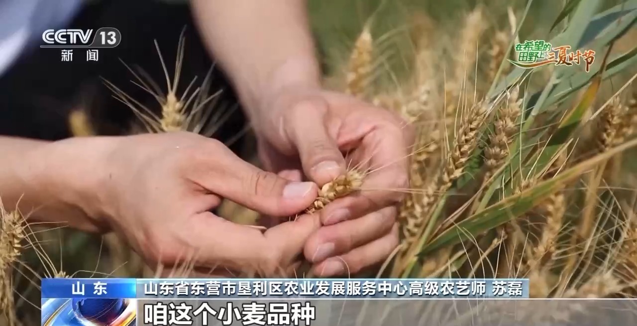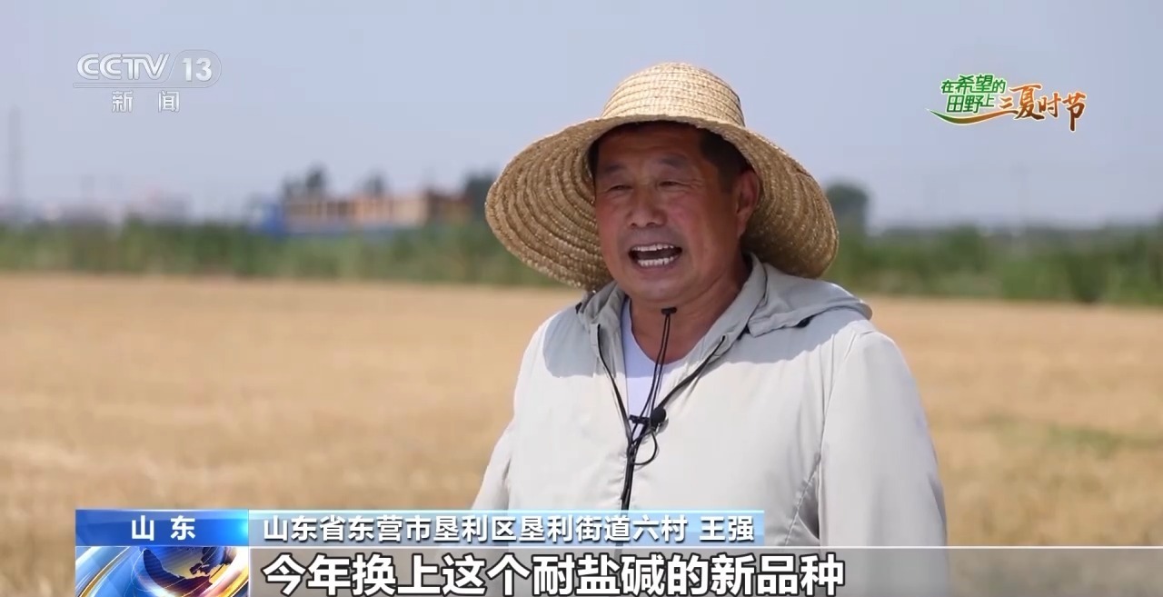 山东省东营市垦利区垦利街道六村王强:咱这个地很碱,原来种麦子每亩只能收个三四百斤,今年换上这个耐盐碱的新品种,每亩产量就过千了,今年是个丰收年。