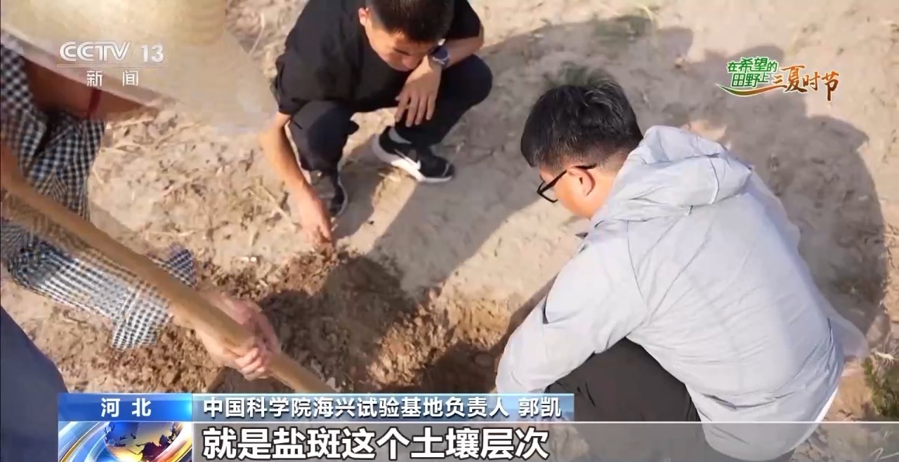 中国科学院海兴试验基地负责人 郭凯:平整土地,另外你看土层的结构,相对来说还是有点儿问题,这个可能是土壤的疏松度不够,盐分就上来多一些。所以下一步还得把斑秃这一块,集中地进行秸秆还田、增施有机肥,让它的结构改善一下,减少盐分往上的运移。