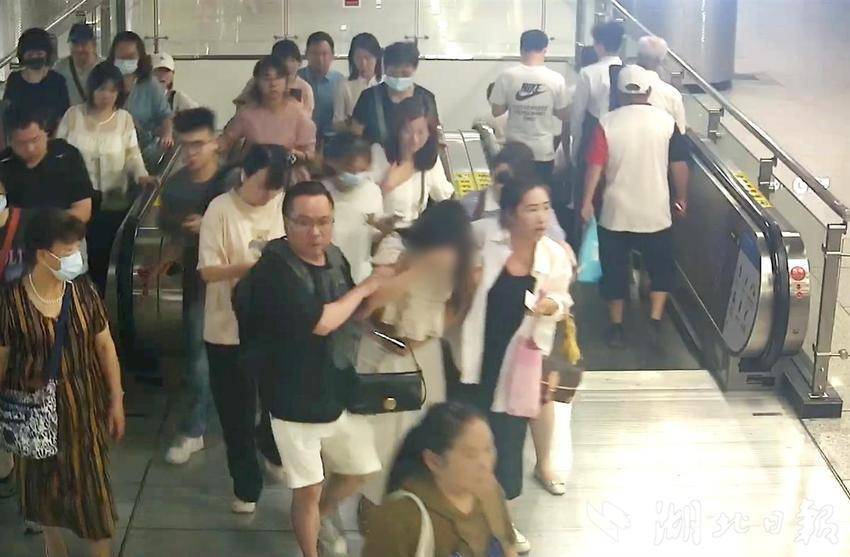 湖北日报讯(记者成熔兴、通讯员李丹、产启斗)6月11日早高峰时段,一乘客没有吃早餐就匆匆出行前往单位,地铁出行途中突然晕倒在滚动电梯上,幸得后方两名乘客及时出手,稳稳托住乘客直至送出电梯。