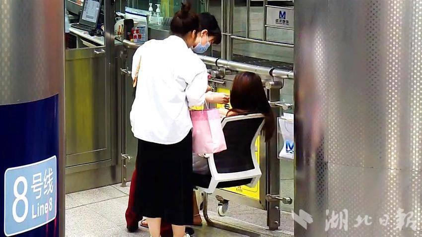 在客服中心处,胡黎搬来轮椅子安排罗女士坐下休息后并端来热水。全程帮扶的好心乘客耐心照顾并送上糖果,工作人员取来热水,何文瑛安抚乘客情绪并配合联系其所在单位、亲友说明情况。