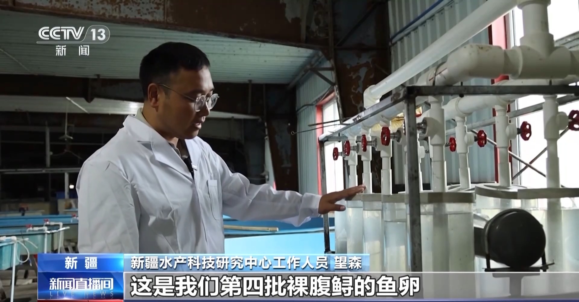 新疆水产科技研究中心工作人员 望森:这是我们第四批裸腹鲟的鱼卵,我们每天的工作就是监测鱼卵的发育情况,通过显微镜进行观察,每天清理死卵,保证裸腹鲟的整个孵化环境是比较好的。