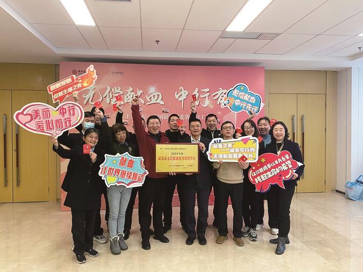 中国银行湖北省分行连续10年组织无偿献血。