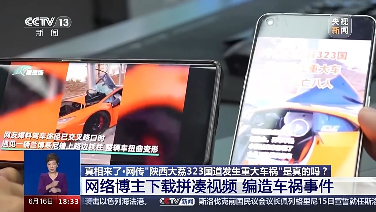 渭南市大荔县公安局网安大队教导员 吕明军:通过向指挥中心、交管大队了解,视频发布当天没有亡人事故。这个拼接视频有一辆兰博基尼跑车,事故发生地不在陕西境内。