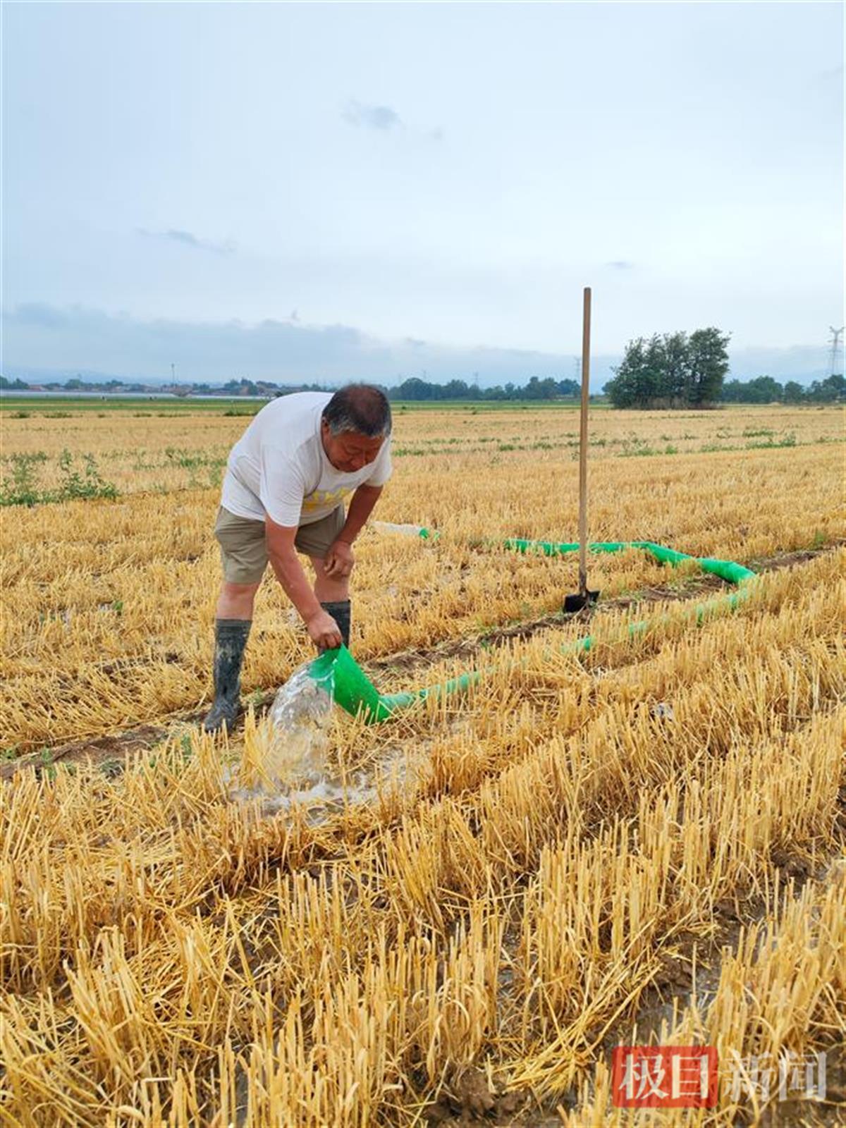 16日,吴引群在田间为夏播玉米浇水(极目新闻记者 舒隆焕 摄)