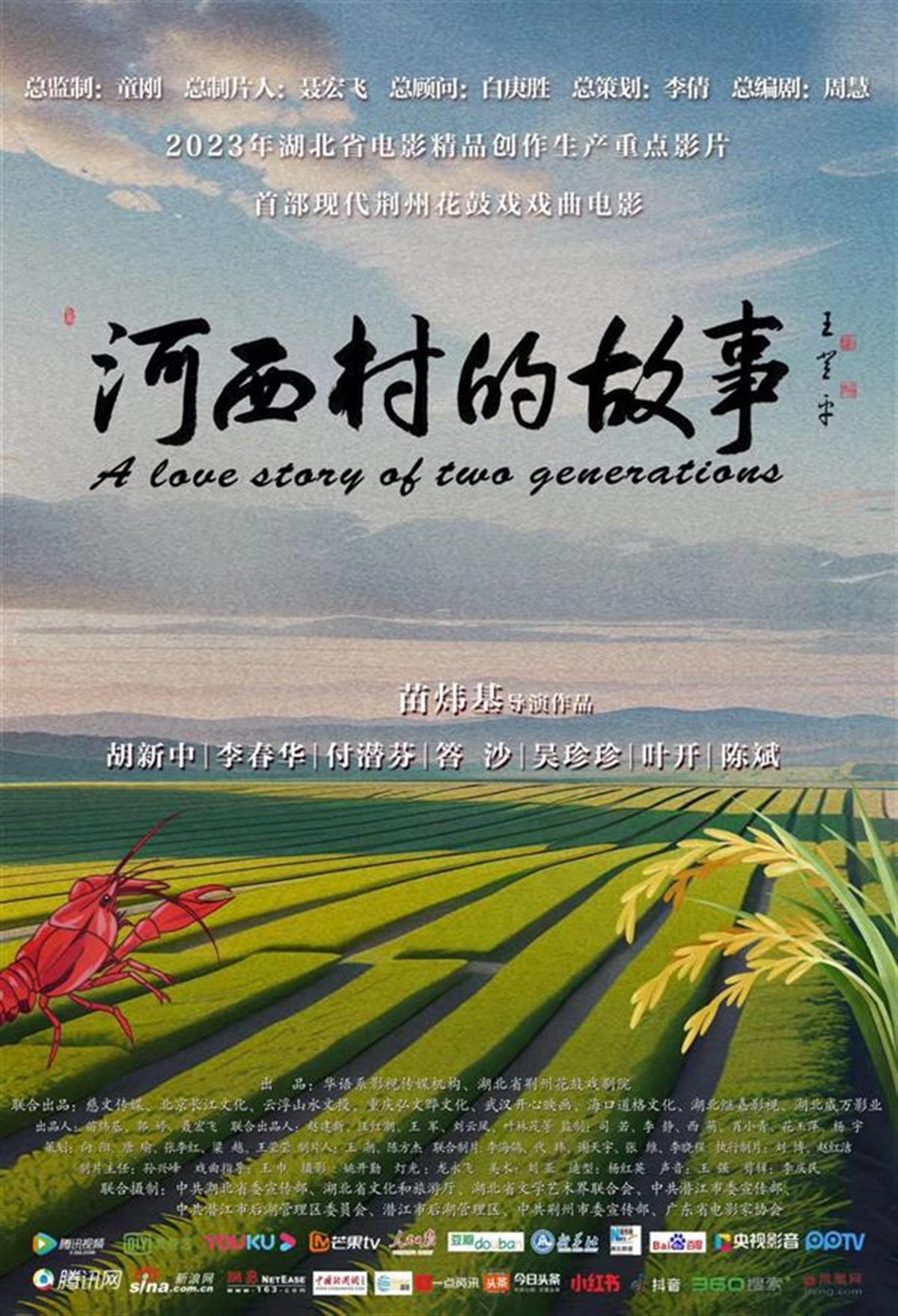 戏曲电影故事片《河西村的故事》是2023年湖北省电影精品创作生产重点影片,由华语系影视传媒机构、湖北省荆州花鼓戏剧院出品;中共湖北省委宣传部、湖北省文化和旅游厅、湖北省文学艺术界联合会、中共潜江市委宣传部、中共潜江市后湖管理区委员会、潜江市后湖管理区、中共荆州市委宣传部、广东省电影家协会联合摄制。