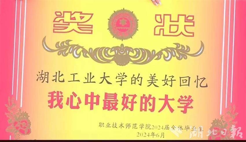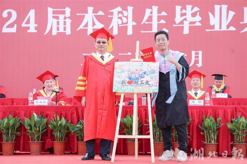 与校领导共饮一杯酒,请师长同作一幅画……6月18日,湖北工业大学2024届本科生毕业典礼暨学位授予仪式上,优秀毕业生代表上台后的花样告别,让现场充满特色与温馨。