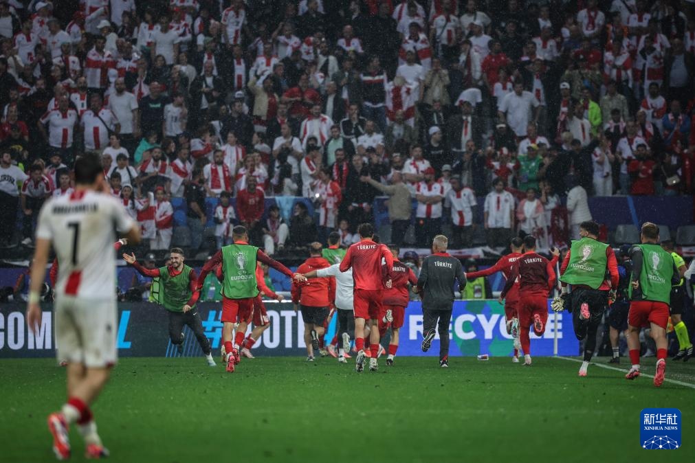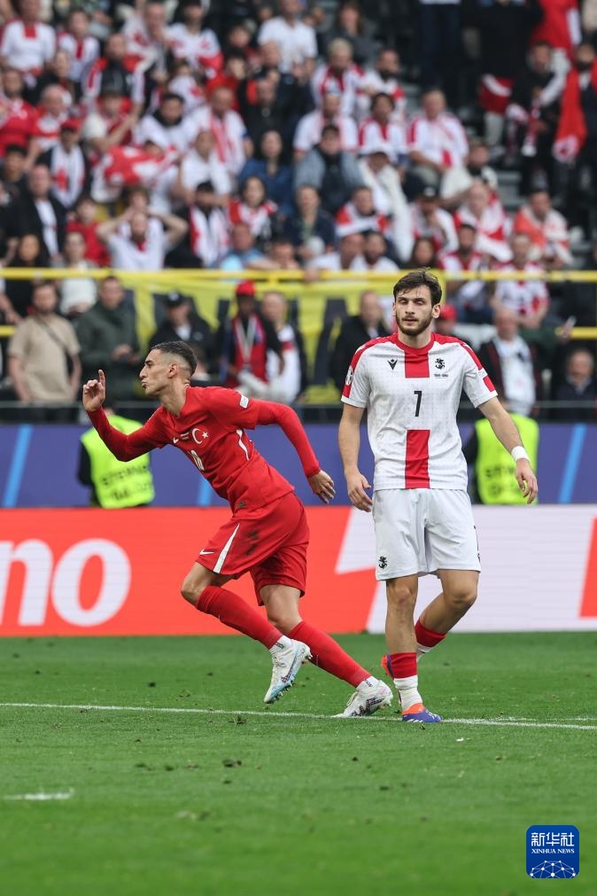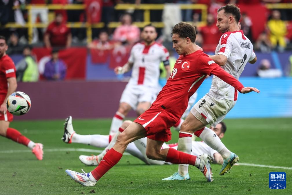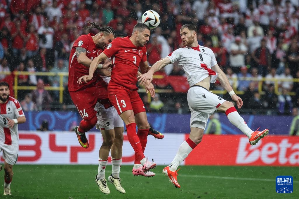 当日,在德国多特蒙德进行的2024欧洲足球锦标赛F组首轮比赛中,土耳其队3比1战胜格鲁吉亚队。