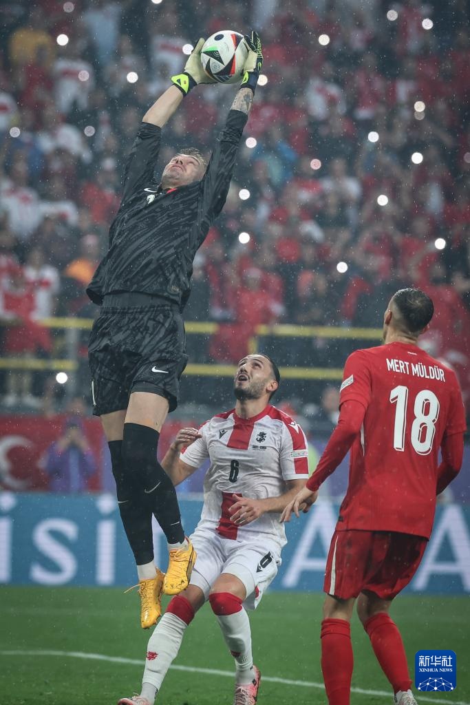 6月18日,土耳其队守门员梅尔特·古诺克(上)在比赛中救球。新华社记者 潘昱龙 摄
