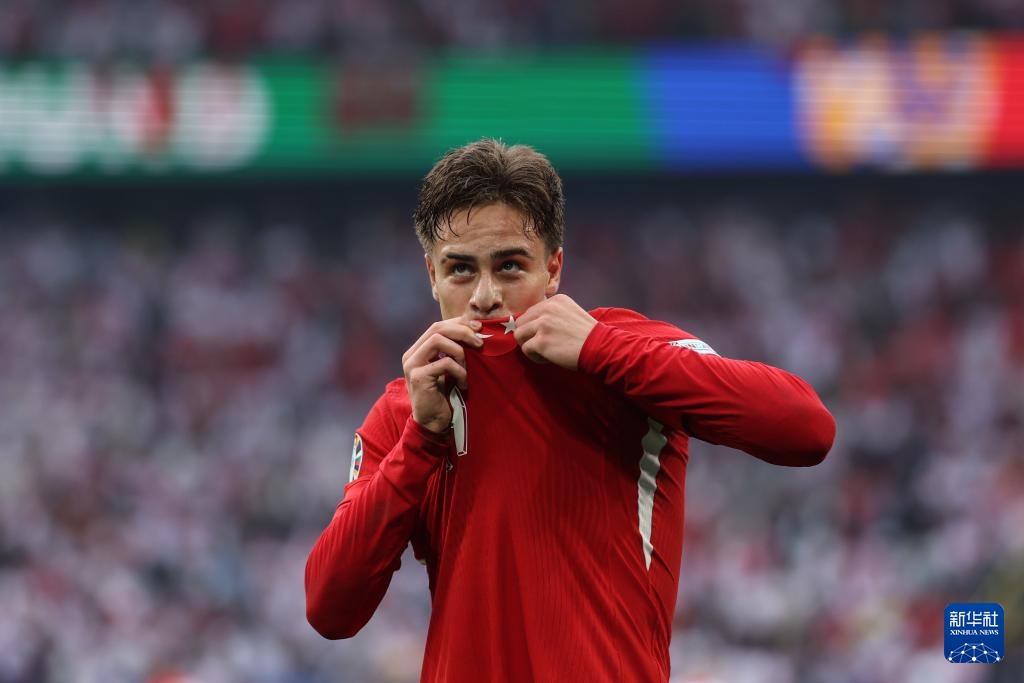 6月18日,土耳其队球员伊尔迪兹进球后庆祝,随后主裁判根据VAR(视频助理裁判)判定该进球无效。新华社记者 潘昱龙 摄