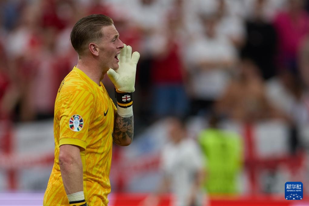 6月20日,英格兰队守门员皮克福德在比赛中。新华社记者 孟鼎博 摄