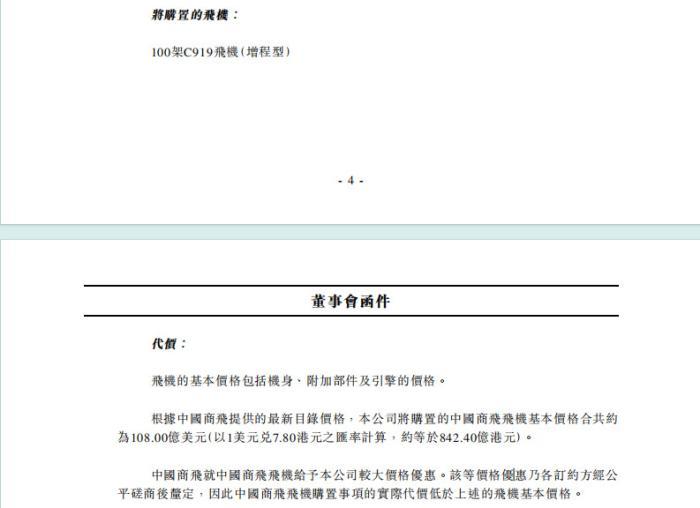 国航公告显示,其购置的100架C919飞机(增程型),每架飞机的基本价格包括机身、附加部件及引擎的价格。
