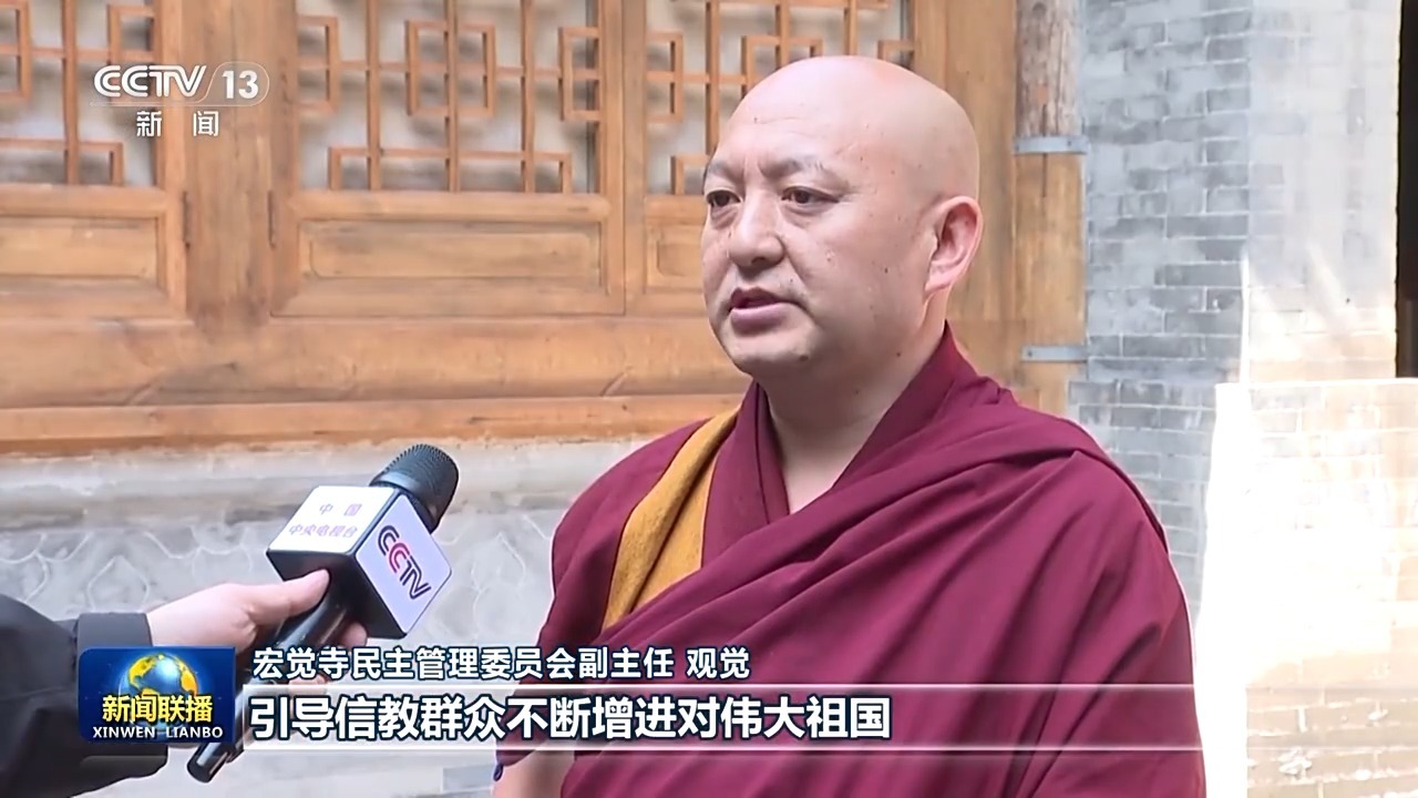 宏觉寺民主管理委员会副主任 观觉:我们要牢记总书记的嘱托,弘扬爱国爱教优良传统,引导信教群众不断增进对伟大祖国、中华民族、中华文化、中国共产党、中国特色社会主义的认同。为促进宗教和顺、社会和谐、民族和睦作出新贡献。