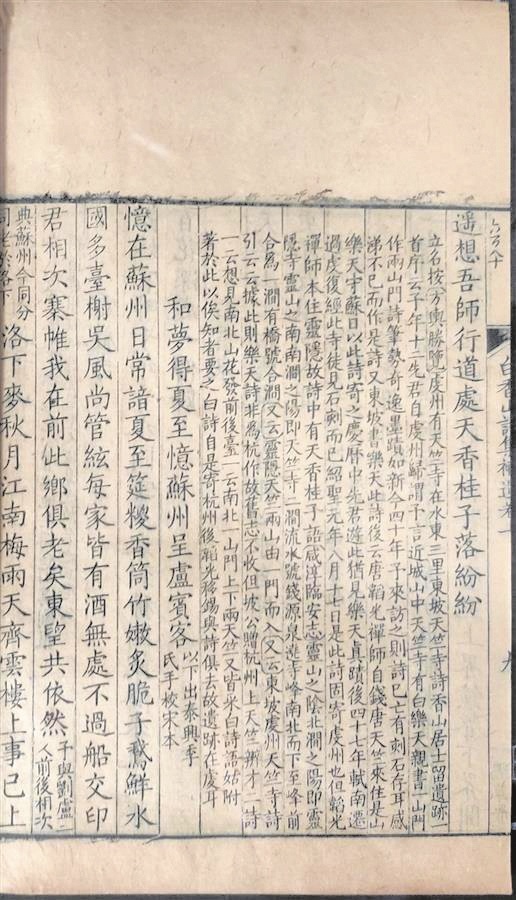 白氏长庆集,《和梦得夏至忆苏州呈卢宾客》,武汉图书馆藏