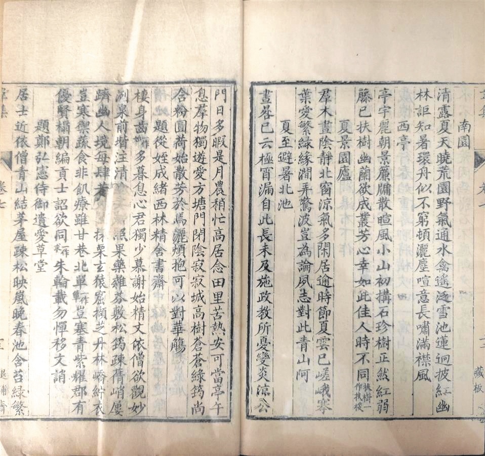 韦苏州集, 《夏至避暑北池》,清胡丹凤退补斋影宋嘉祐刻本, 武汉图书馆藏