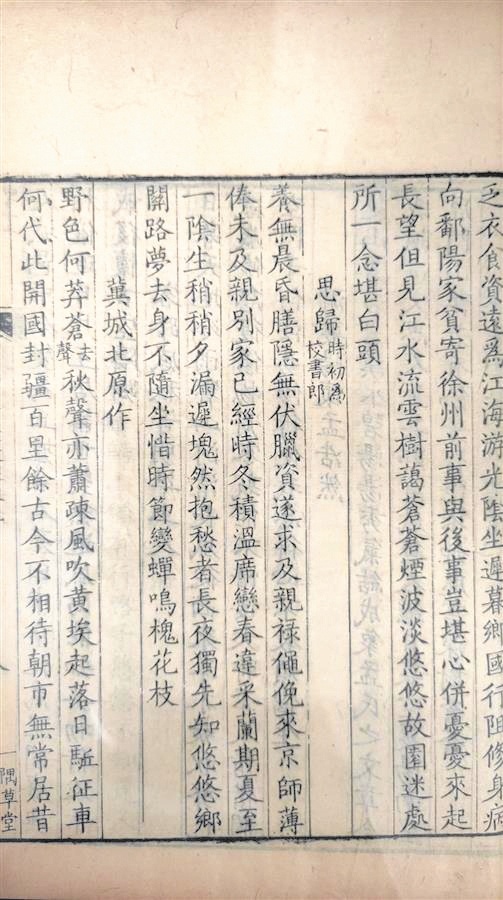 白氏长庆集,《思归(时初为校书郎)》,清一隅草堂刻本,武汉图书馆藏