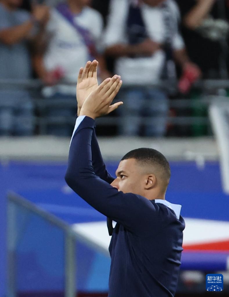 6月21日,法国队球员姆巴佩赛后向观众致意,他本场比赛因伤未能上场。新华社记者 张帆 摄