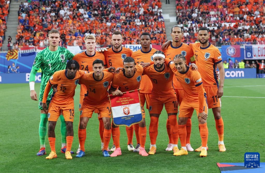 6月21日,荷兰队首发球员赛前合影。新华社记者 白雪飞 摄