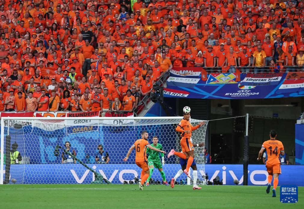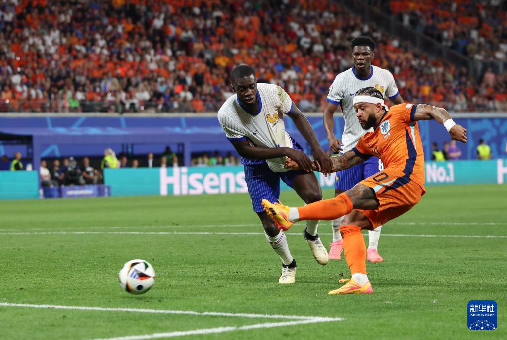 6月21日,荷兰队球员德佩(前)在比赛中射门。新华社记者 白雪飞 摄