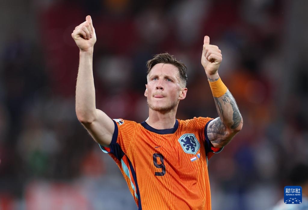 6月21日,荷兰队球员韦格霍斯特在比赛后向观众致意。新华社记者 白雪飞 摄
