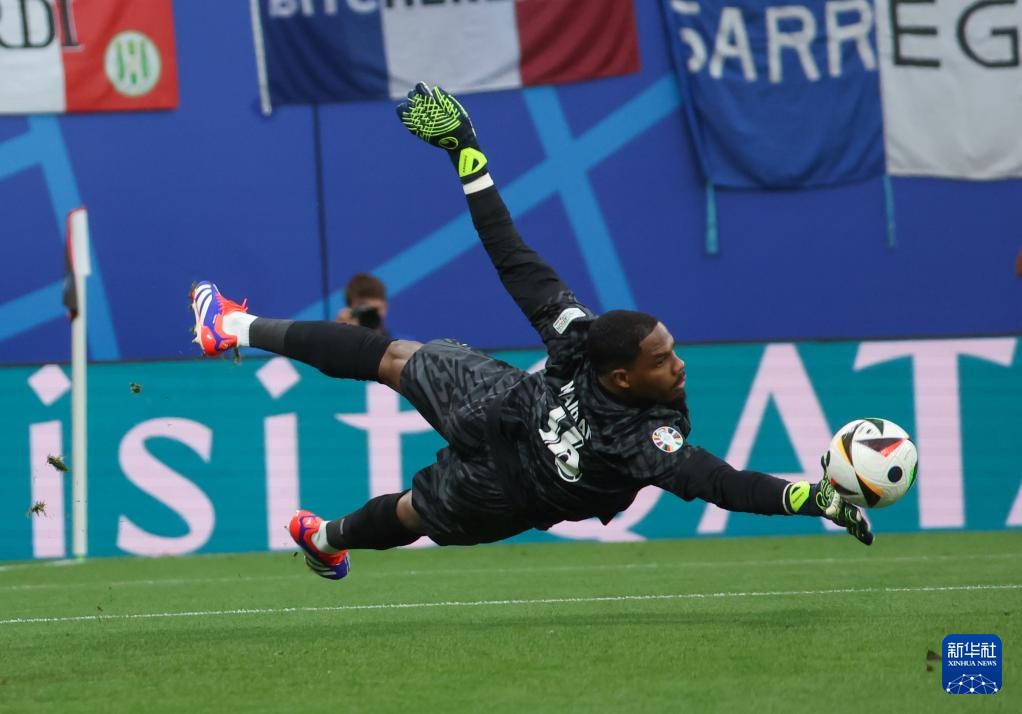 6月21日,法国队守门员迈尼昂在比赛中扑救。新华社记者 张帆 摄