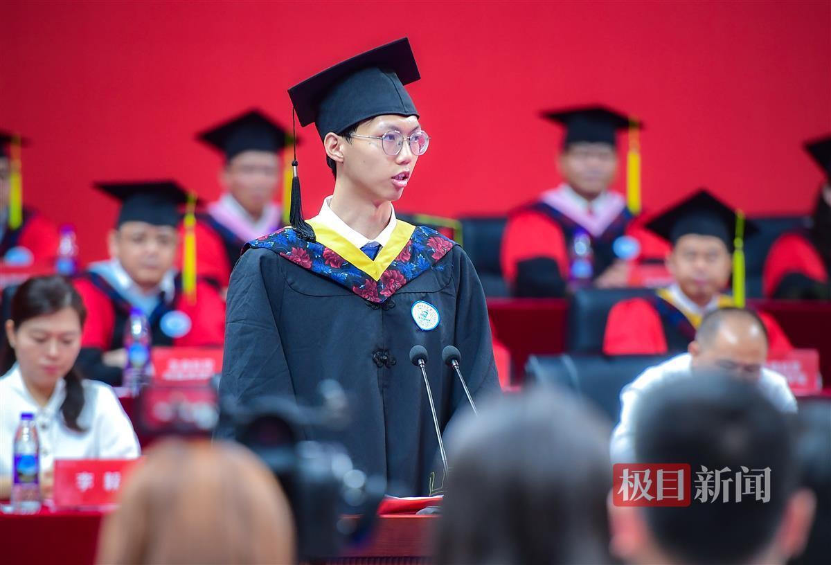 “在榜样力量的加持下,我在自习室奋笔疾书,在科创基地废寝忘食,在喻家湖桥头对着清晨的破晓说“我能行!”该校机械科学与工程学院优秀毕业生代表蒋定成,现场分享了勤奋求学,不断超越自我的故事,他已直博清华大学。