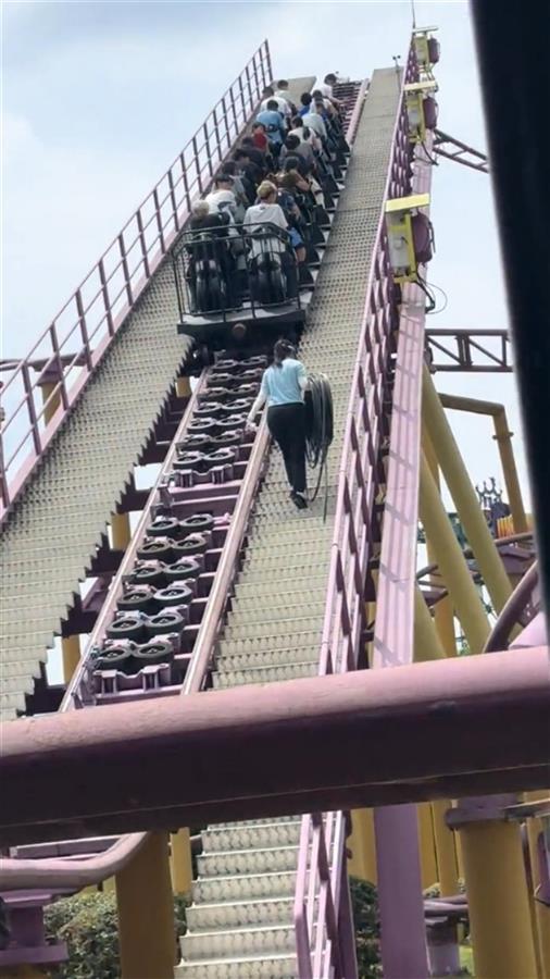 发布视频的网友告诉记者,事发6月21日,过山车启动后停在半坡中,工作人员先让游客下来,经检查后又测试了两遍,才开始正常运行。