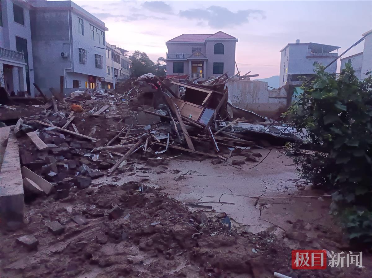 蓝溪镇是上杭县受灾严重的乡镇,镇上的梅永村里,多间老房子在洪水的冲刷下倒塌。丘春莲姐弟住的两层土房也倒塌了,但他们是幸运的,弟弟在房子垮塌前逃了出来,姐姐则躲在坍塌的房子的阳台上,并最终脱险。