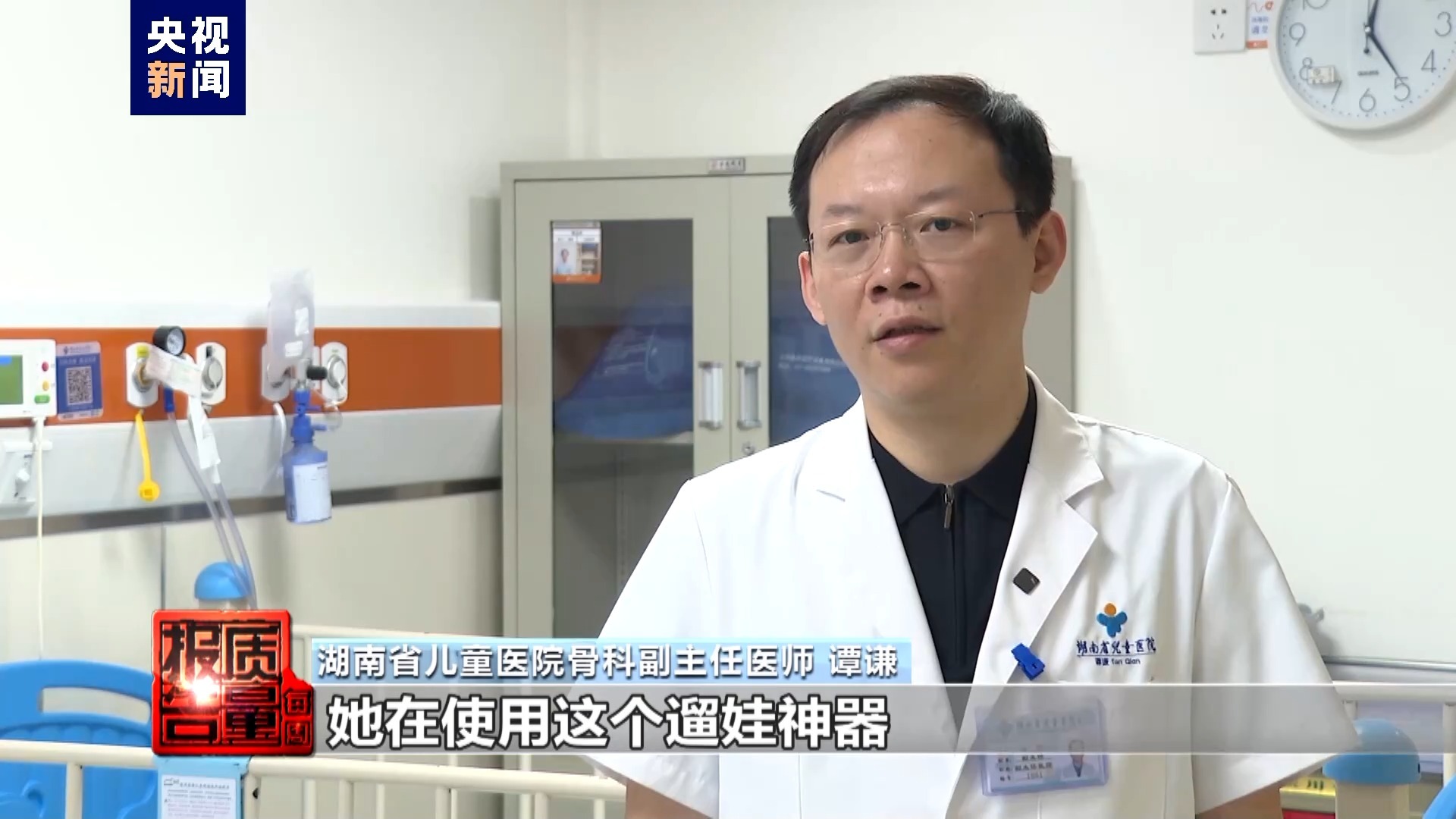 湖南省儿童医院骨科副主任医师 谭谦:上次就是一个孩子妈妈,她在使用这个遛娃神器带着娃在外面玩的时候,整个遛娃神器倾倒,孩子整个一侧肢体包括头部着地,结果导致了手部的轻微骨折和头皮的挫裂伤,小孩才3岁多。