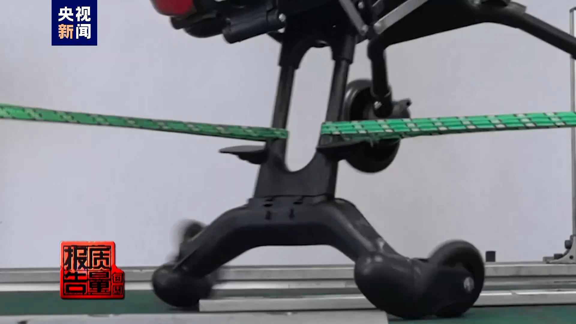 上海海关机电产品检测技术中心轻工消费品科高级工程师 倪彬彬:国家标准要求推车在经过36000次循环之后,车子整体结构不能失效,并且能够正常使用。这款车在不到1000次循环的时候,就发生了扶手杆断裂的情况。