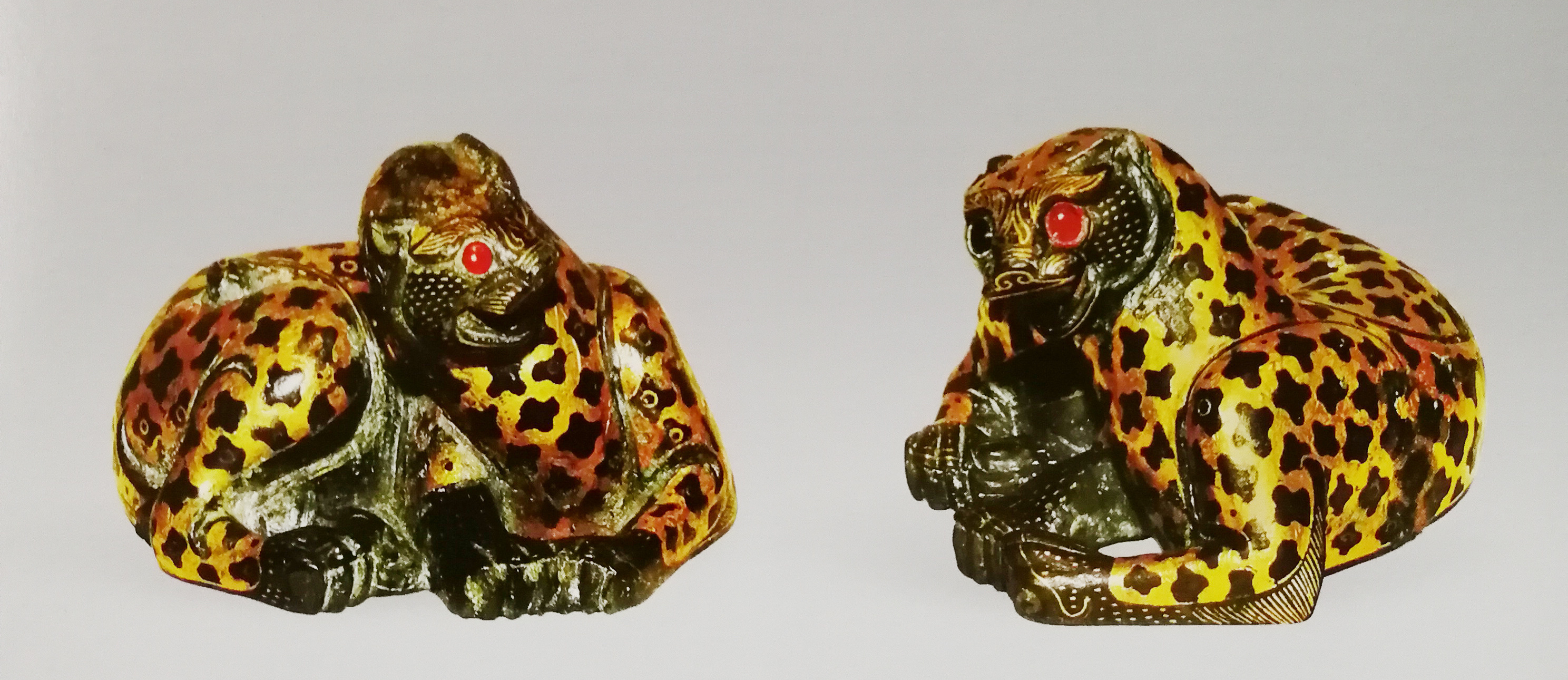 豹眼镶嵌玛瑙,昂首侧扭,臀部浑圆
