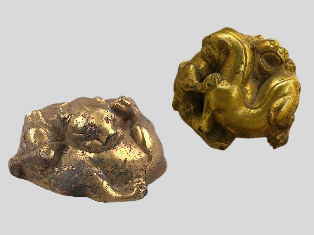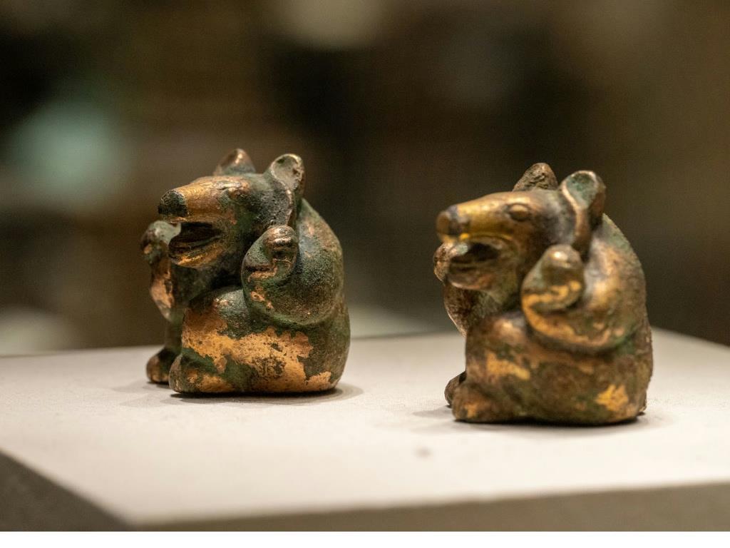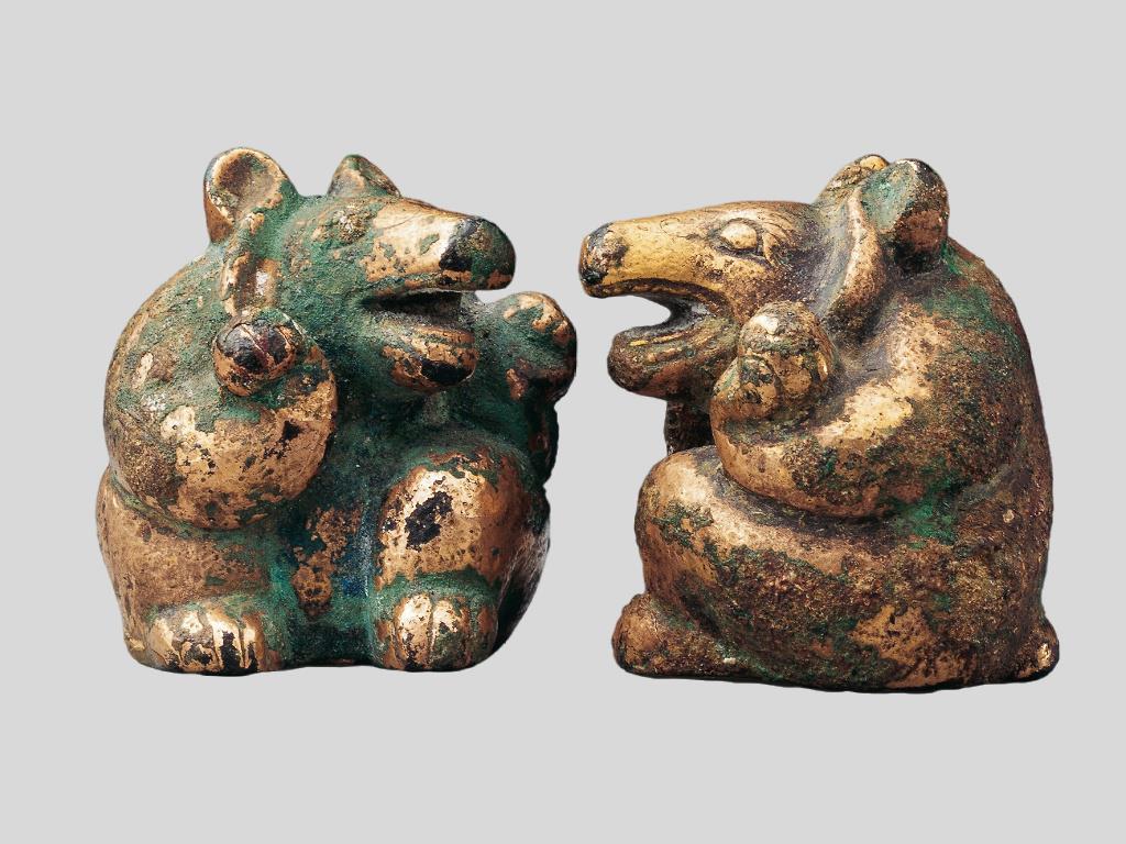 △鎏金虎熊相斗铜镇 西安博物院藏