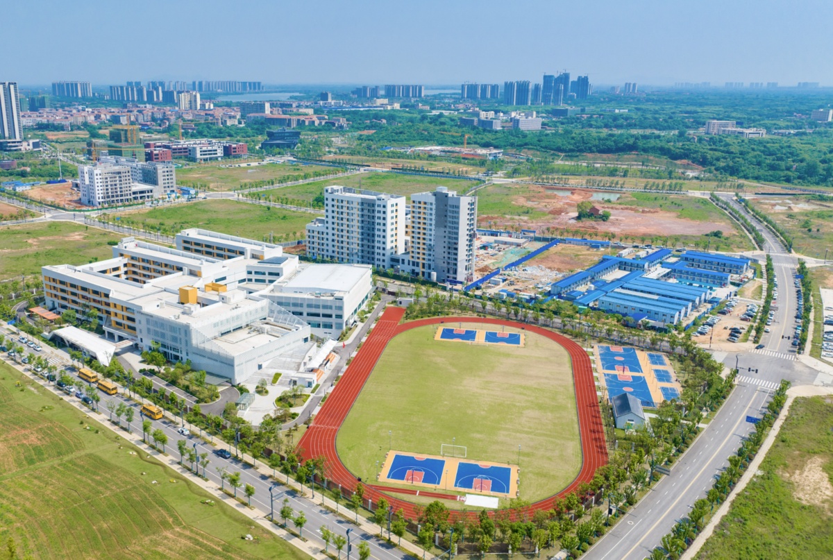 5月14日,武汉新城中心片区,武汉新城未来学校二期工程(高中部)施工现场,工人们忙着外墙喷漆、室内装修。(湖北日报全媒记者 薛婷 通讯员 潘协凯 摄)