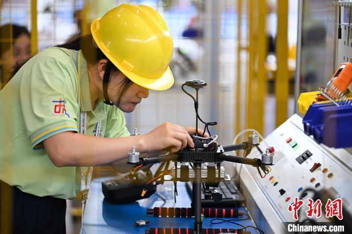 6月25日,第二届“一带一路”国际技能大赛在重庆国际博览中心举行,吸引来自61个国家和地区的590名技能精英参赛观摩,其中,参赛选手190名、裁判183名、翻译30名,部分国家还派出部长级官员和技术观察员全程观摩大赛。图为选手在无人机装调检修项目比赛中。中新社记者 何蓬磊 摄