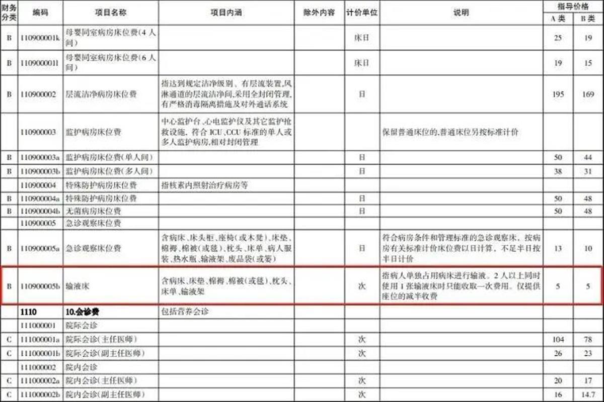 输液床的收费规定(图源:宁夏回族自治区医疗保障局网站)