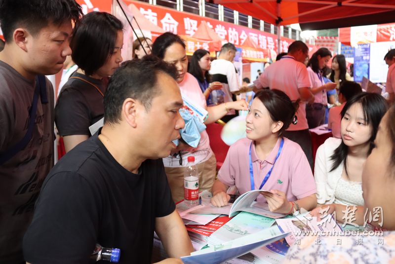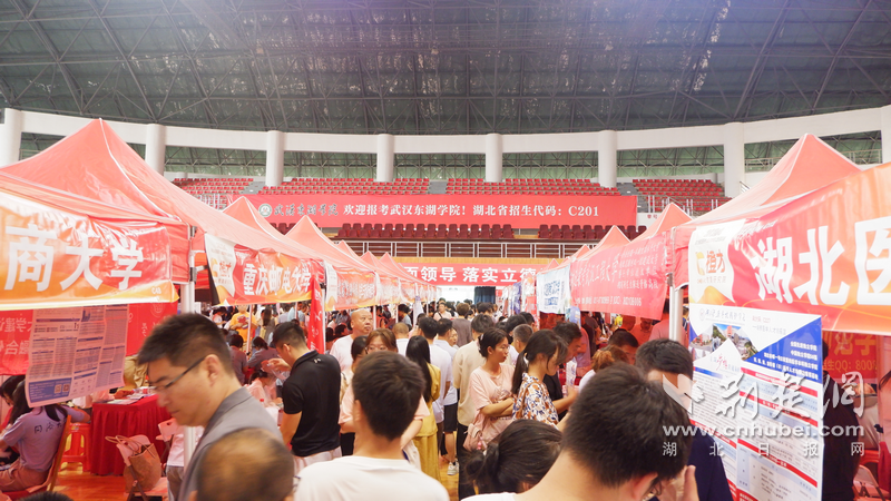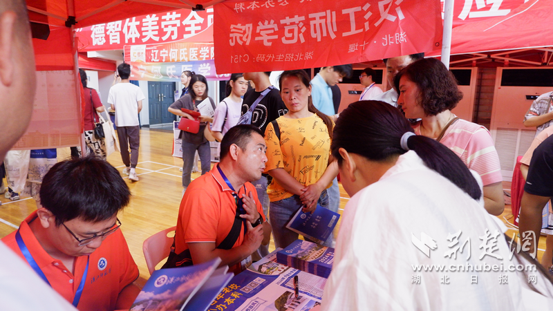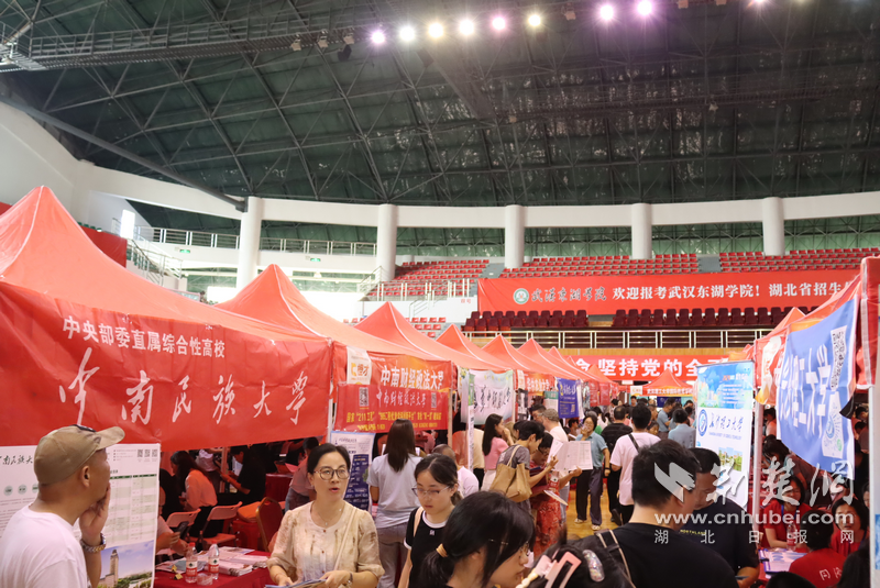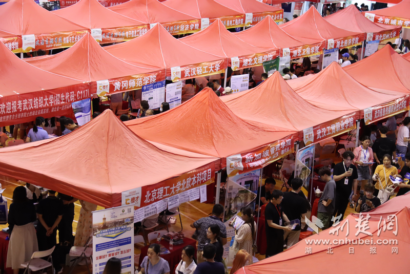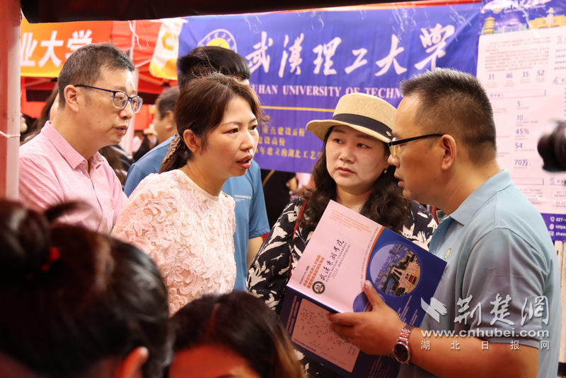 荆楚网(湖北日报网)讯(记者齐一璇 通讯员张蕾 实习生刘倩)6月26日,在风景秀丽的汤逊湖畔,2024年湖北省高考志愿填报(武汉)公益咨询会综合专场在武汉东湖学院火热进行。前来咨询的家长络绎不绝,会场中心人潮涌动。同济大学、武汉大学、华中科技大学、北京邮电大学、中南民族大学、特色高职院校……现场汇集百余所高校。五万余学子、家长怀揣梦想,穿梭于各高校展位,聚精会神。
