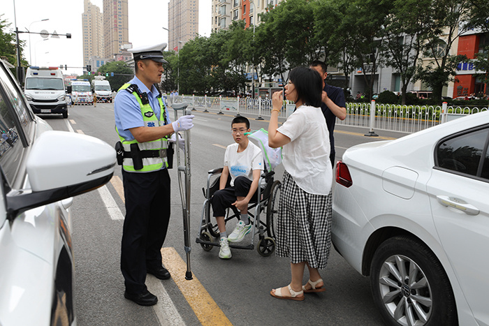 近日,辽宁省阜新市公安局交警支队民警为行动不便的考生提供帮助,确保考生顺利参加考试。 本报通讯员 翁少波 摄