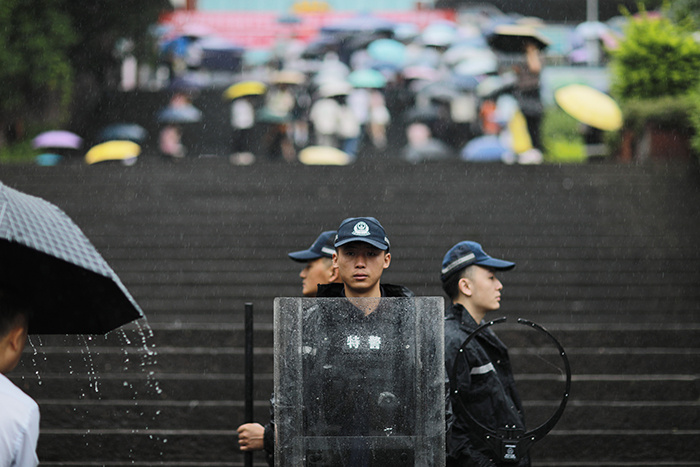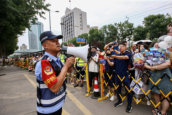 “我每年都要参加中高考护考。”6月13日13时许,在四川省成都市新津区五津中学考点,五津派出所副所长杨刚和同事们忙着定点警戒、维护考点周边秩序等工作,为考生入场做准备。