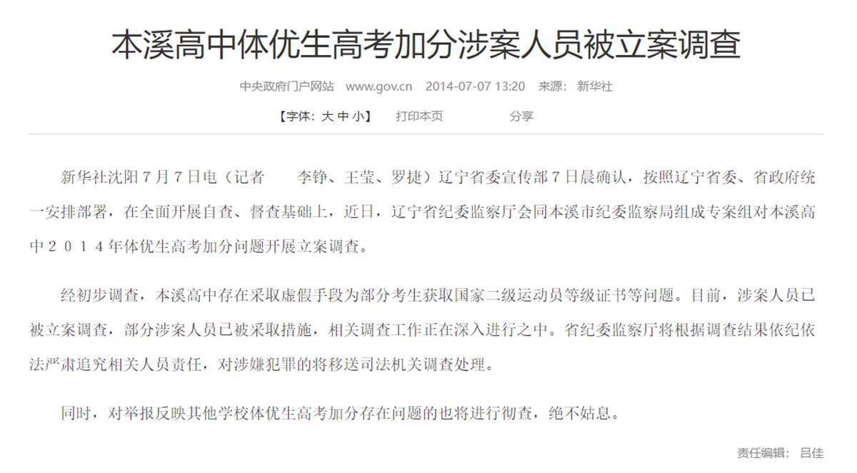更令人生疑的是,在她高考第二年,她的母校辽宁省本溪市高级中学被媒体曝光存在国家二级运动员造假情况,该校一年高考生1000多名,获得体优生加分者高达87人,连游泳池都没有,竟然有25名游泳二级运动员,其中不少人都和李雪琴一样,靠参加全国少儿游泳冠军赛获得的运动员资格。这桩“高考加分腐败第一案”当时轰动全国,最终多人被追责,辽宁省270名考生提出放弃加分资格。足见,其所在学校曾存在“批发式”的高考体育加分造假。