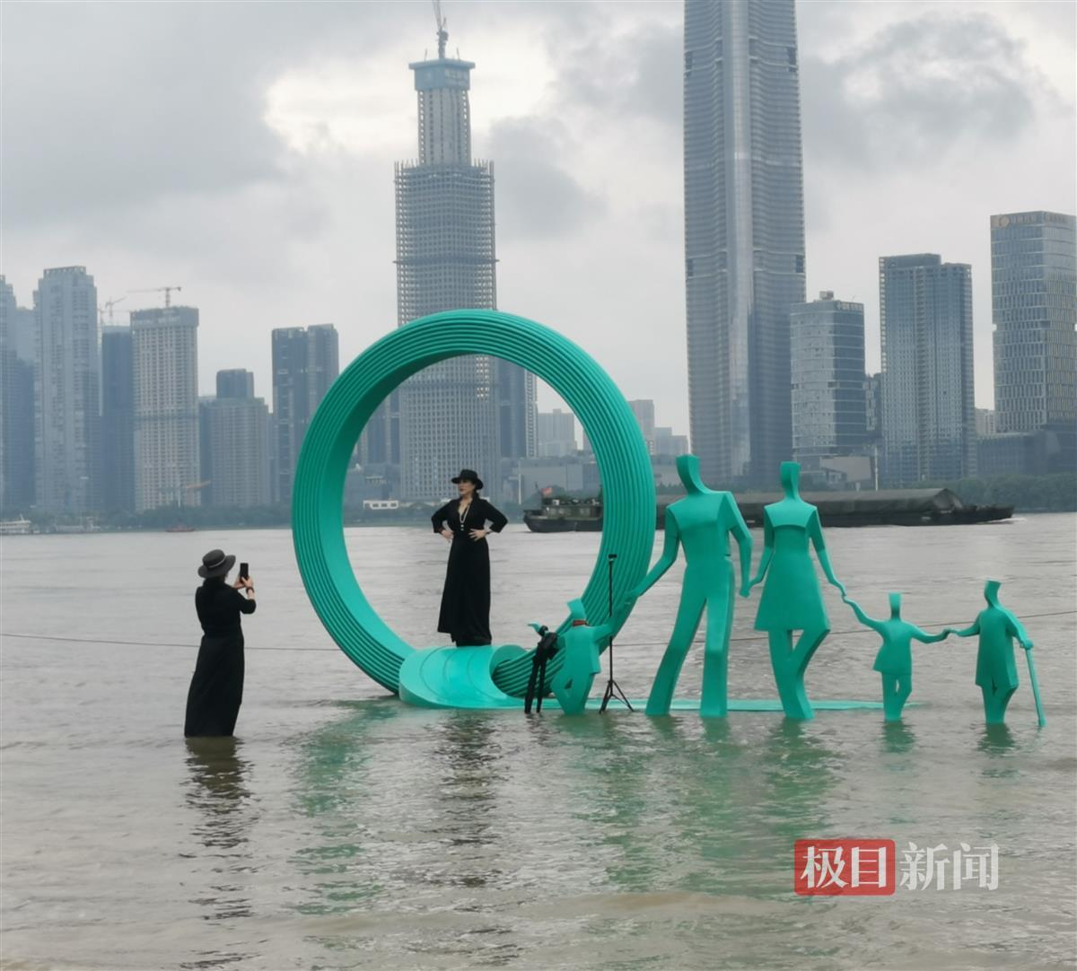 沿着三阳广场逆流而上,极目新闻记者注意到,江滩园区内依然有不少游客,或是散步,或是戏水,享受着夏日里难得的凉爽时光。