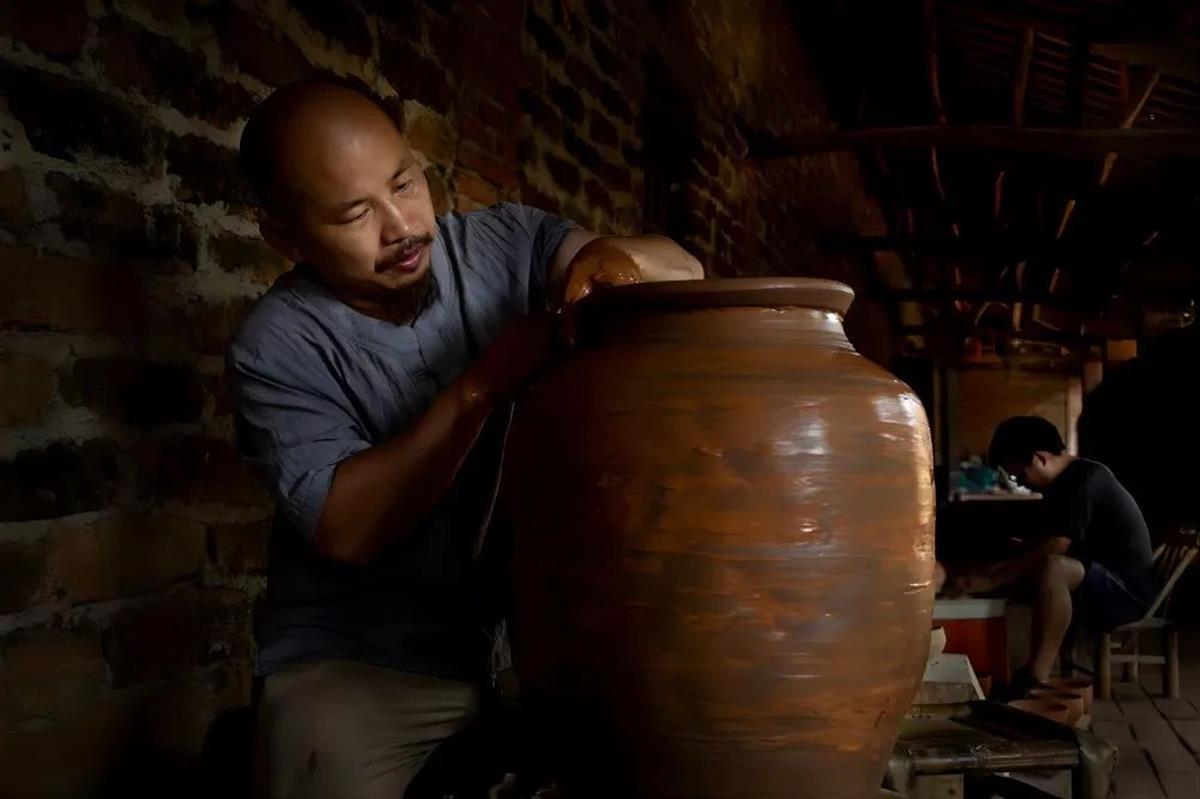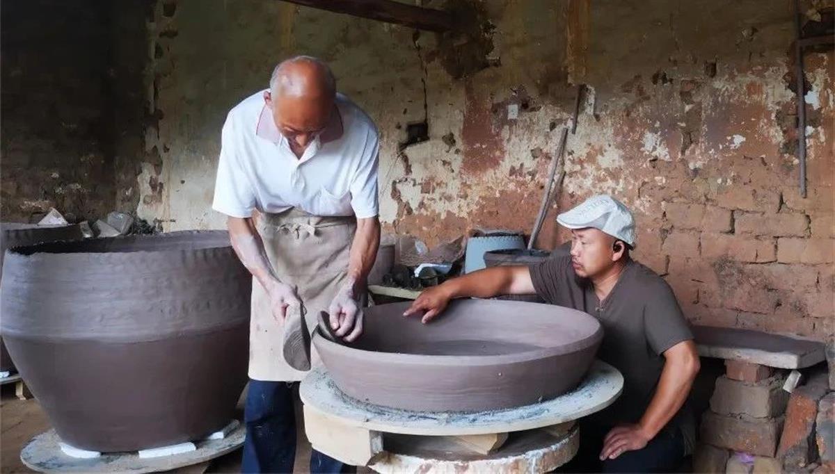 树荫下,蓄着一脸长长胡须的窑主高全军,正在指导匠人们练泥、盘条,赶制两百口千斤大缸。
