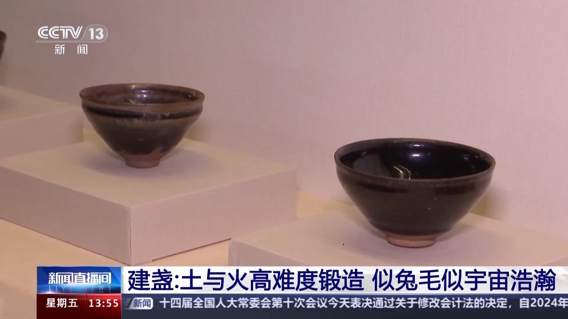有一种瓷器,它的纹饰,是釉液在自然状态下流淌形成,有的似兔毛纤细柔长,有的甚至像似日月星河宇宙浩瀚,这就是宋代兴盛的建窑瓷器。尤其是它的黑色釉面,极能衬托白色茶沫,成为宋代最佳的斗茶用具。 昨天,“中国建窑建盏文化展”在国家博物馆对公众开放,尽显土与火锻造出的璀璨文明。