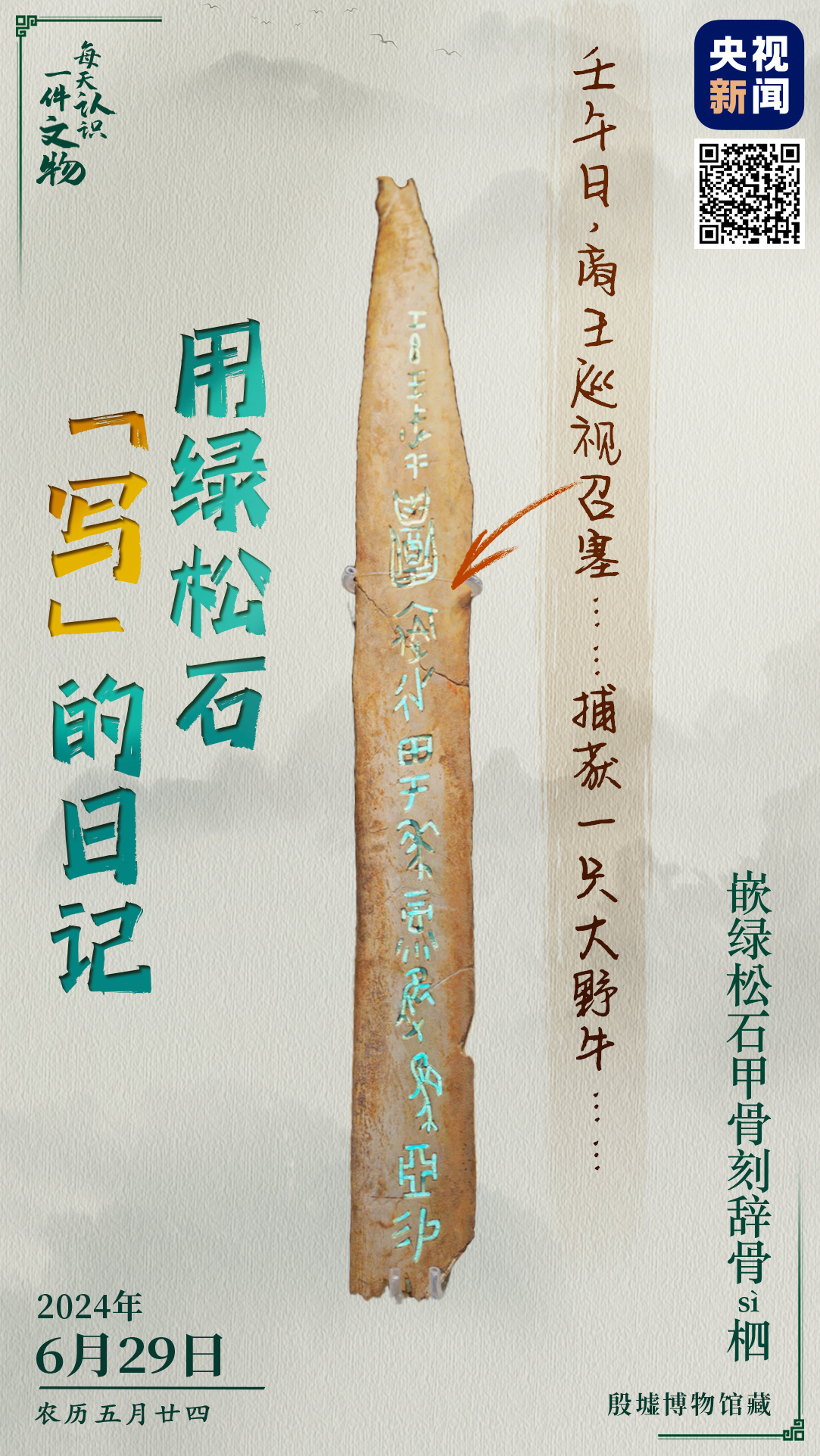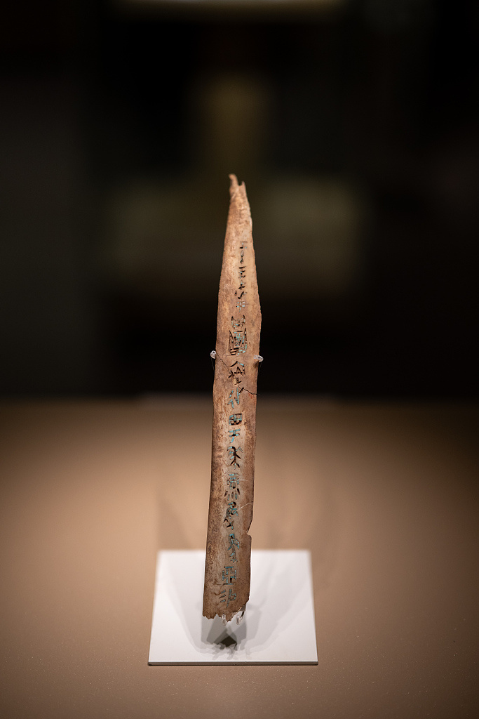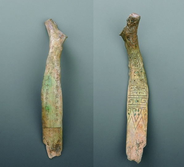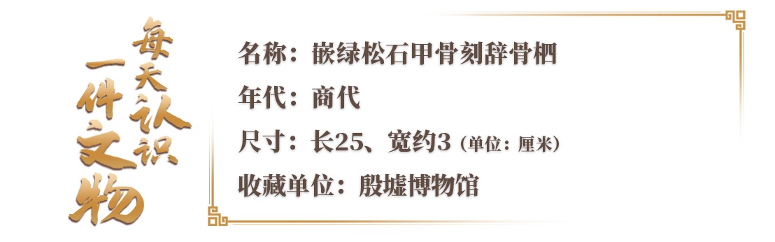 这是嵌绿松石甲骨刻辞骨柶