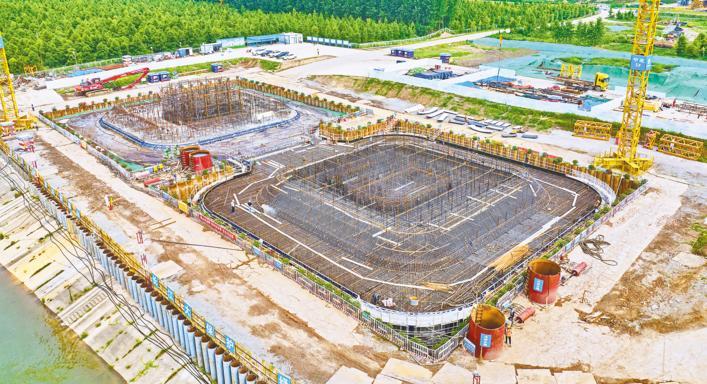 6月18日,荆州李埠长江公铁大桥北岸施工现场一片繁忙景象。李埠长江公铁大桥位于荆州市荆州区,总投资104.73亿元,是荆岳铁路、二广高速公路改线及荆州市区公路网控制性工程,系世界最大跨度的钢桁梁斜拉悬索协作体系公铁两用跨江大桥。