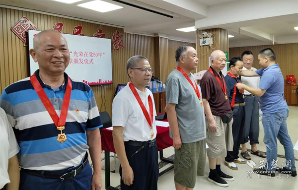 荆楚网(湖北日报网)讯(记者 李燕 通讯员 杨朝霞 张芳敏)“工作退休,但思想和行动不退休;我将时刻牢记党的教导,对党忠诚,保持共产党员优良本色,尽己所能发挥余热。”在颁奖仪式现场,老党员彭帮超触摸着胸前熠熠生辉的纪念章感慨万分。