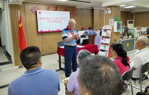 为庆祝中国共产党成立103周年,推动社区党员红色精神薪火相传,6月28日,武昌区首义路街道武南村社区开展了“光荣在党50年”纪念章颁发仪式暨“七一”主题党日活动,以此弘扬老党员的奉献精神,坚定新党员的初心使命,促进社区党建工作的新老传承。
