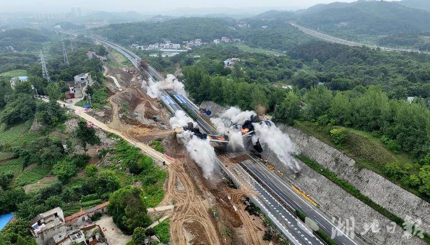 引人关注的是,有5座天桥采用一次性整体爆破方式拆除。在高速改扩建中一次性爆破拆除多座天桥,湖北还是“头一遭”。湖北交投京港澳改扩建公司特邀中国工程院谢礼立、姜德生、秦顺全、谢先启、高宗余等5位院士领衔指导“京港澳高速公路跨线天桥精细爆破拆除关键技术及应用”课题研究,以科研成果指导爆破作业。