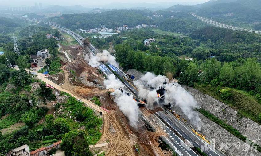 6月30日6时起,繁忙的京港澳高速湖北北段罕见地封闭15小时,只为一次性拆除56座上跨天桥、27座跨线门架,这是湖北史上最大一次拆桥行动。
