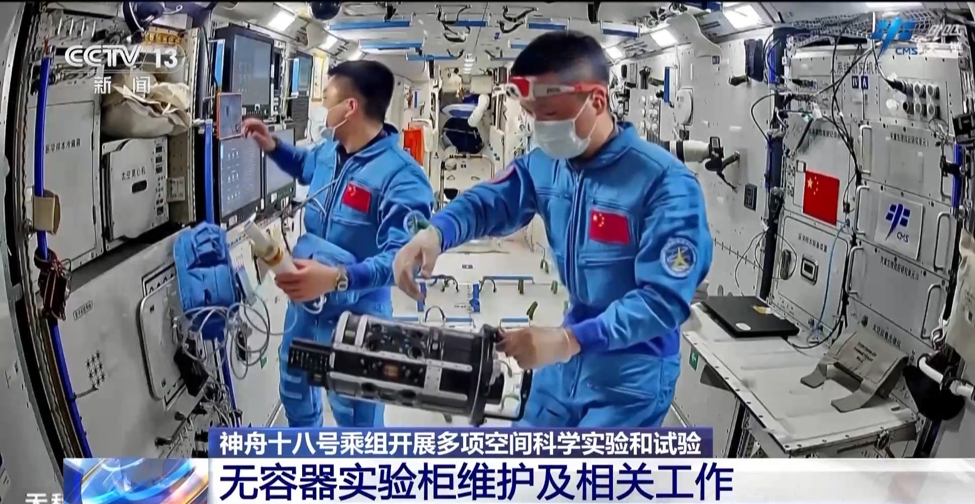 乘组定期开展了无容器材料实验柜实验样品更换,实验腔体清理、轴心机构电极维护等工作,以保障空间科学实验的连续性、准确性和安全性,确保实验设备和实验环境状态稳定,相关实验项目顺利推进。